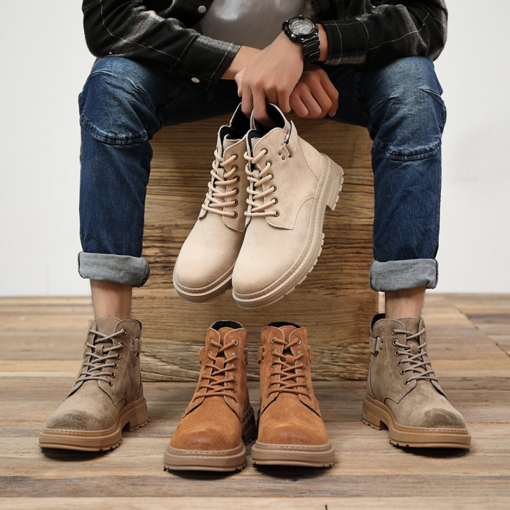 New Martin Boots Men British Style Leather Tooling Boots High-Top Trend Autumn Men's Desert Military Boots