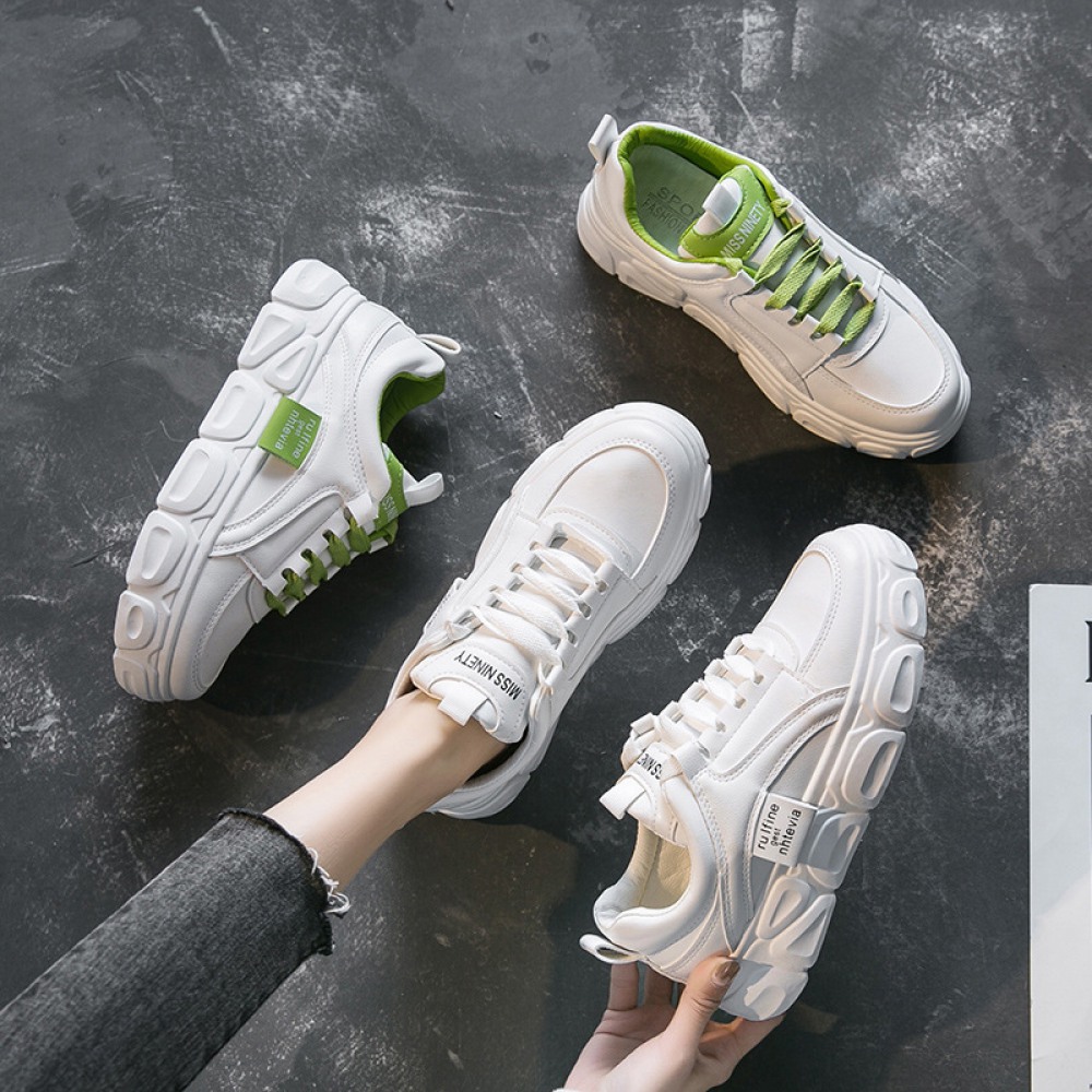 White Shoes Female Spring New Heightening Student Running Board Shoes Female Breathable Lace