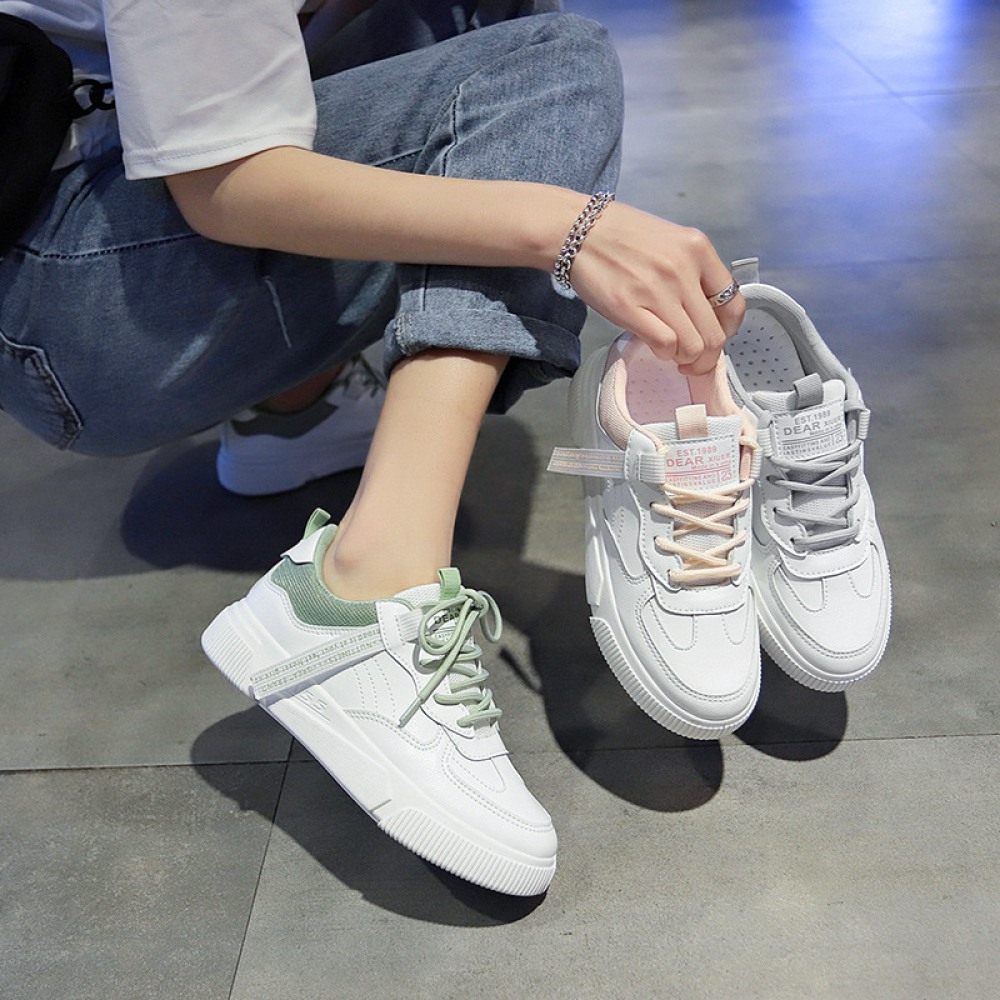 White Shoes Female Spring New Heightening Student Running Board Shoes Female Breathable Lace